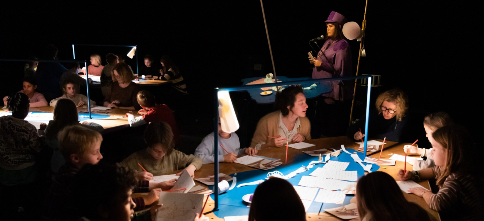 ‘VOUW’ is een beeldende doe-voorstelling en theatraal luisterboek. Het is een theatervoorstelling in samenwerking met het publiek. Handen bouwen aan beelden, beelden illustreren stemmen, stemmen nemen je mee naar het onbekende en geluiden zuigen je mee naar een andere wereld.