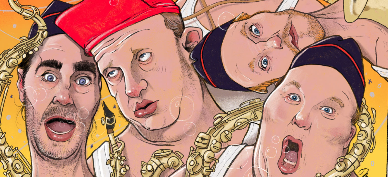 De zes witte (nietszeggende?) mannen, van Die Verdammte Spielerei gaan je voor en vormen een hechte bende vol vriendschap, muziek en liefde, elk met hun eigen kracht en instrument. In de nieuwe voorstelling ‘Sax, drugs & marsmuziek’ regent het oplossingen voor alle kleinmenselijke problemen; problemen op het werk, in het verkeer, in de slaapkamer, met de buurman, …