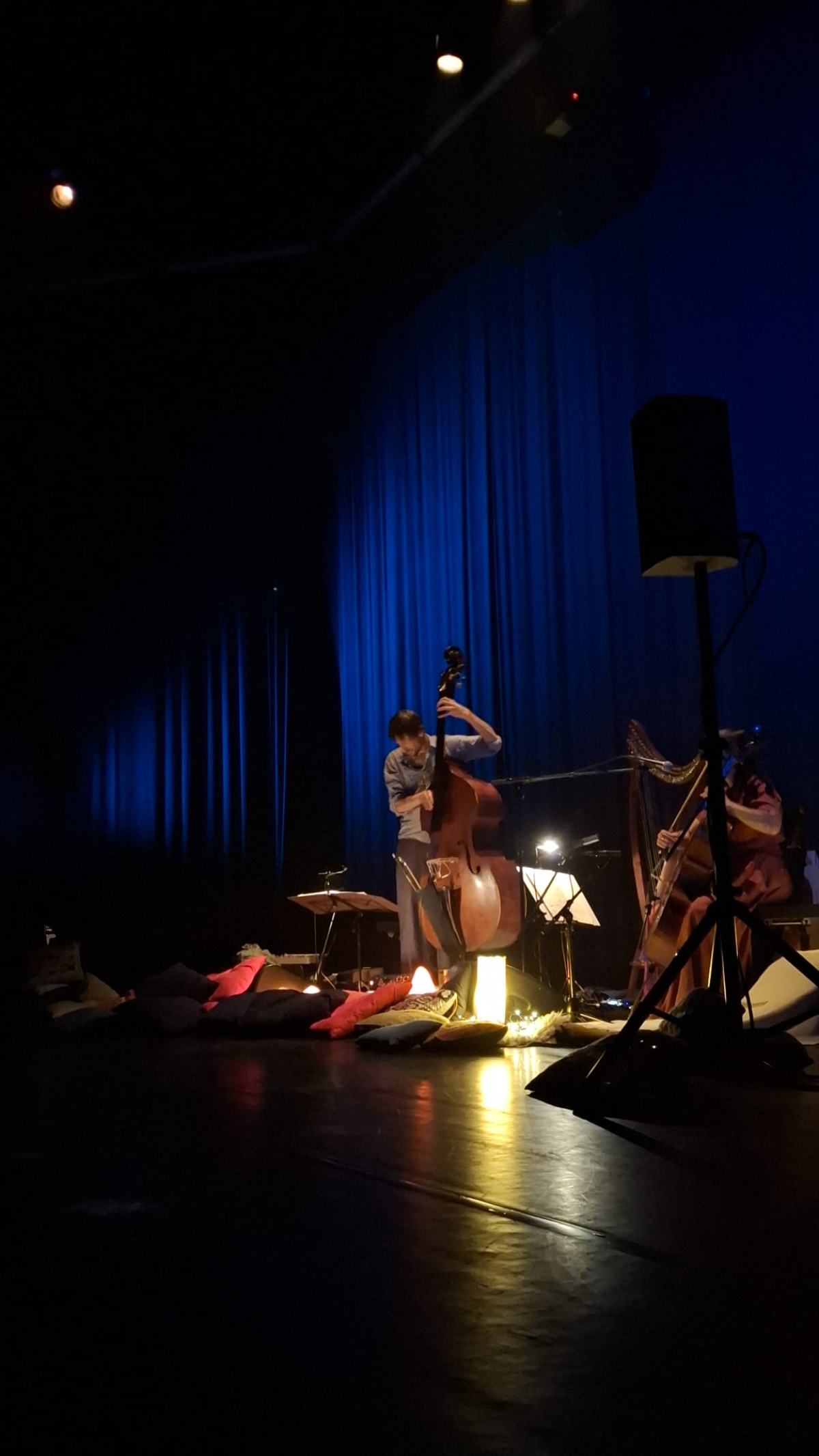 Na een korte inleiding door Seraphine Stragier zelf, nam iedereen deel aan het ligconcert. Onder een knus dekentje kwam iedereen tot rust onder begeleiding van de warme klanken van de cello, harp, nyckelharpa en yayli tambur van Seraphine en Tim.
